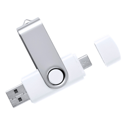Memoria USB con almacenamiento de hasta 16 GB y entrada alternativa de tipo C incluida.