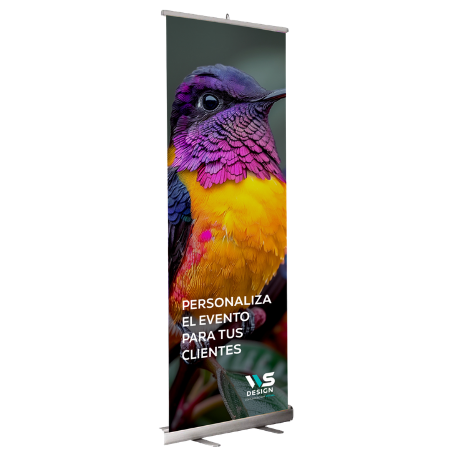 Expositor enrollable con facilidad de montaje y alta estabilidad en la base, incluye una bolsa de nylon.