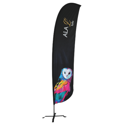 Fly Banner con forma de Ala hecho de poliéster, con una gran variedad para elegir en tamaños y soportes.
