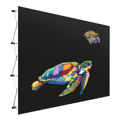 Photocall extensible con variedad en tamaños, con un máximo de 3355mm de ancho y 2535mm de alto.