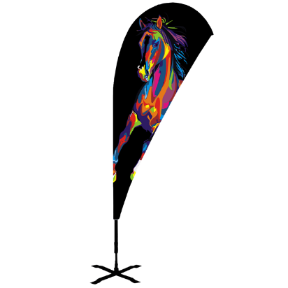 Fly Banner con forma de Gota hecho de poliéster, con una gran variedad de tamaños y soportes.