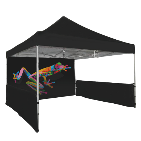 Carpas con estructura de aluminio y tela impermeable, con facilidad para el montaje y 100% personalizable.