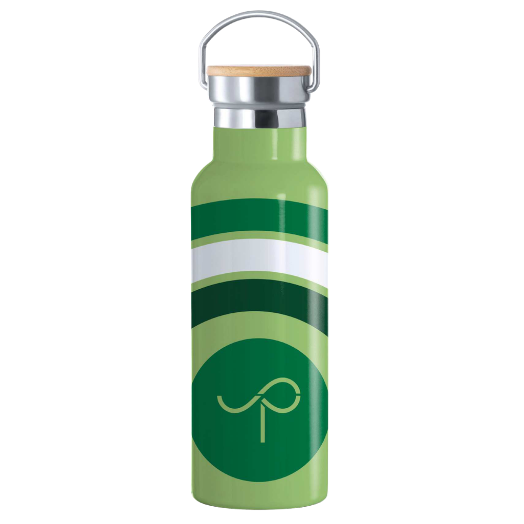 Bidón elaborado en acero inoxidable reciclado con doble pared, impresión a todo color en 360°.