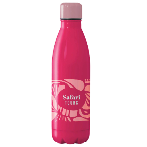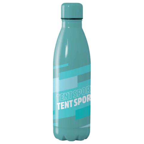 Botellas elaborada en aluminio como material ligero pero resistente, con impresión a todo color en 360°.
