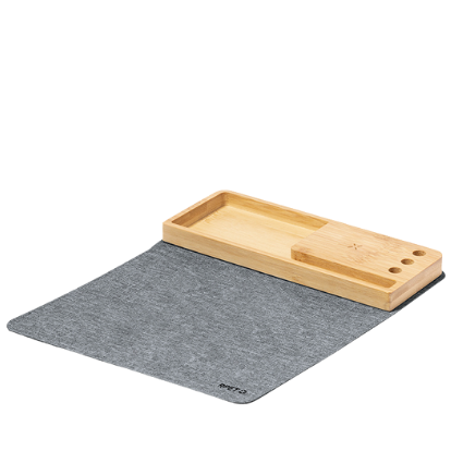 Alfombrilla de escritorio elaborado en poliéster y bambú de base deslizante y con cargador inalámbrico.