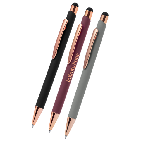 Bolígrafo elaborado en aluminio con acabado de caucho en la punta, permite recarga de cartuchos Jumbo.