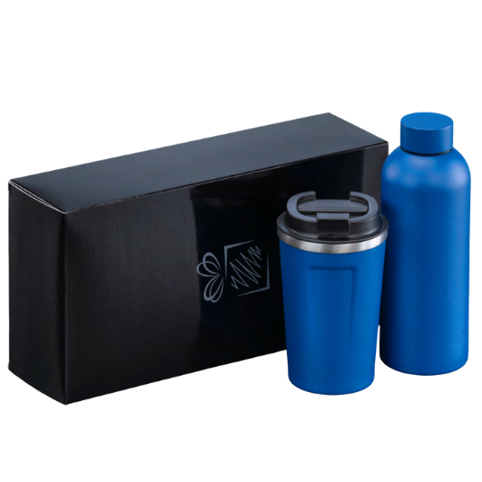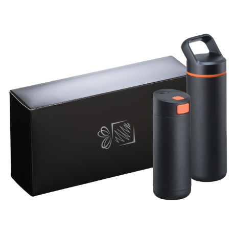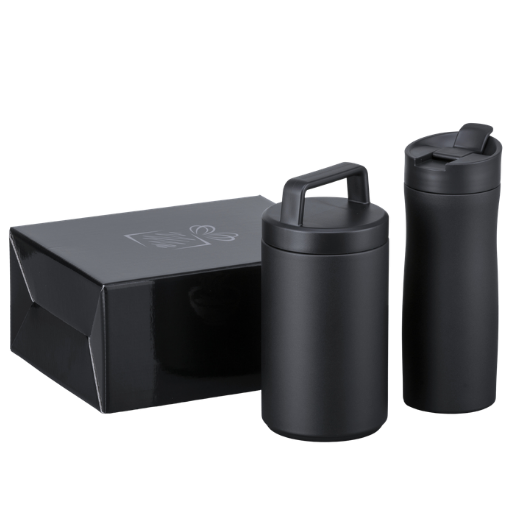 Set especial con termo para café y botella con sellado de silicona, ambos hechos de acero inoxidable POSCO.