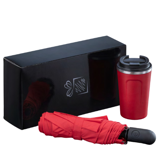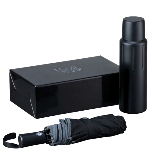 Set especial con termo para café de acero inoxidable POSCO y paraguas automático con sistema anti-viento.