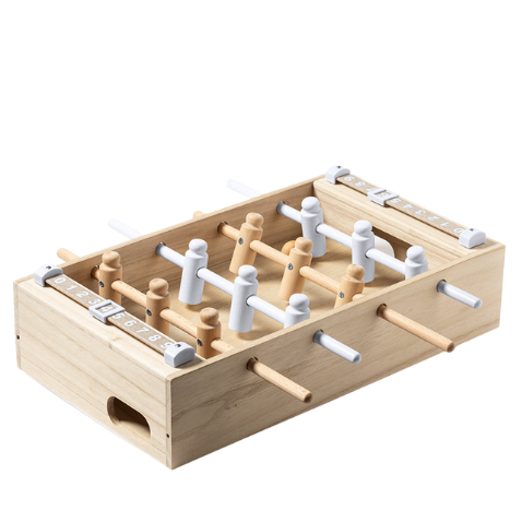 Minifutbolín elaborado con madera, caña de trigo y poliestireno, incluye dos pelotas de madera.