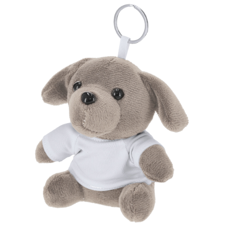 Llavero en forma de peluche hecho de poliéster reciclado, con camiseta lisa para una impresión limpia.