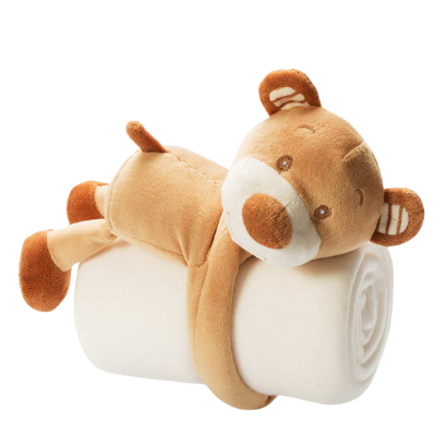 Peluche elaborado de Polar Fleece (poliéster sintético), con cualidades anti-pelusas y manta de regalo.