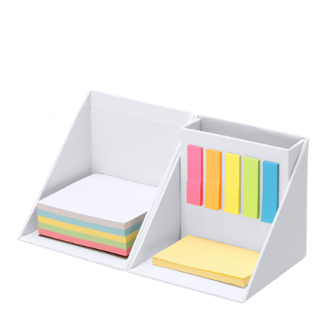 Lapicero elaborado en cartón reciclado con 250 hojas, 50 notas adhesivas y 125 mininotas adhesivas incluidas.
