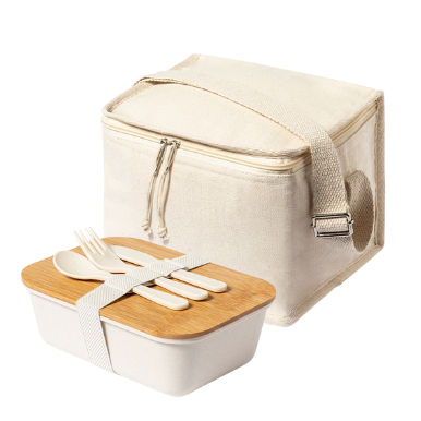 Nevera forrada en aluminio y elaborada en algodón con fiambrera de bambú incluida.
