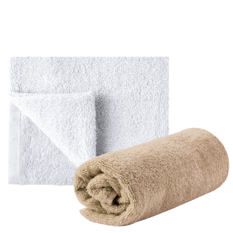 Toallas elaboradas en algodón 100% orgánico, con 140 x 70 cm en tamaño y un peso de 350 g/ m2.